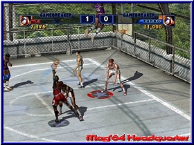 Kommen wir zu dem was das Spiel so unterhaltsam macht. Die Trick Action, krachende Dunks und Alley Oops in allen Facetten. Dabei unterscheiden sich natürlich die Offense und Defense Steuerungen voneinander. Seid Ihr mit eurem Team im Angriff sind die Grundtasten neben dem 3D-Stick für das Steuern die A-Taste für einen Pass, die B-Taste für den Wurf sowie X und Y für die Trick Action. Der C-Stick dient ebenfalls dem Passen, wobei hier nicht der nächste angespielt wird sondern die Richtung den Pass angibt. Die Tasten L, R und Z haben alle 3 eine Turbo Funktion. Im Gameplay gibt es dadurch sehr viel Steigerungen. Neben dem Gewinn eines Spiels ist es das Ziel möglichst viele Score Punkte zu machen. Greift man normal an und wirft einfach auf den Korb gibt es dafür lächerliche Scores von ein paar hundert Punkten. Wendet Ihr schon beim Spielaufbau die Tricktasten an werden die Punkte mehr bei einem abgeschlossenen Wurf. Drückt man dazu nun noch ein, zwei oder alle 3 Turbo Tasten wird's richtig interessant. Die Multiplikatoren schnellen in die Höhe und die Pass Varianten sehen auch plötzlich völlig anders aus. Schonmal cool mit dem Knie gepasst oder oben gegen das Brett geworfen um den Ball sofort zurück zu bekommen?`Hier bekommt man die Gelegenheit. Oder man vollführt mit dem Aufbauspieler einen Trick und sieht im Augenwinkel wie ein Mitspieler aufsteigt und man paßt im richtigen Moment dorthin, dann darf man einen wunderschönen krachenden Alley Oop betrachten, der nun wiederum immens viele Punkte bringen kann. Auf dem Boden rollen mit dem Ball, tänzelnd zwischen den Spielern herumlaufen oder No Look Pässe hinter und vor dem Körper sind hier weißgott keine Seltenheit. Dunks aller Varianten lassen einen MJ in seinen besten Tagen ganz schön alt aussehen. ;-) Dazu kommen 3 Dinge die das Gameplay immens aufwerten. Zum ersten sehen die Animationen obergenial aus. Bei 3 Spielern pro Team sind diese auch detaillierter und größer als in den Simulationen. Sehr geschmeidig mit runden Bewegungsabläufen und dazu angepaßt. Die Spieler dunken und bewegen sich wie ihre originalen Vorbilder. Egal ob aus den 70ern oder der Neuzeit. Ein Genuß dem zuzuschauen. Dazu ein Gamespeed der paßt wie die Faust auf's Auge. Sauschnell geht die Action über die Courts, wobei man weder Frameraten oder sonstige Probleme sieht. Auch hier ist es weniger unübersichtlich durch das 3-3 und man kommt teilweise kaum nach so schnell passen sie sich die Bälle zu. Und drittens eine Grafik, die selbst die angestammten Simulationen in den Schatten stellt. Natürlich kann man eine Hallengrafik nicht mit Outdoor Courts vergleichen. Ziehe ich aber die in den Simulationen enthaltenen Courts als Vergleich heran liegen Welten dazwischen.