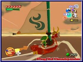 Man sieht beim vorbeifahren auch kleine Vorsprünge aus der Felswand gegenüber ragen. Nur hinkommen war mir irgendwie bis jetzt verwehrt. Wird aber sich auch noch ein Thema sein. Also entschließe ich mich einfach ganz gen Nordosten zu segeln. Unbekanntes Gebiet und ich kann danach in Richtung Westen zurück um vielleicht die Insel mit dem Bombenhändler, wo meine Paßwort Geschichte war nach dem rechten zu sehen. Auch hier fällt kurz nach der Insel auf das man erneut viele kleine Inseln entfernt sieht. Man hat teilweise den Eindruck es werden immer mehr. Eine der Inseln bringt mich zu einem weiteren Minispiel, die es scheinbar auch wieder in mehreren Varianten gibt. Kaum angekommen wollen die guten natürlich wieder Geld von mir ehe ich loslegen kann. Aber ich sollte merken das meine Energieleiste um per Blatt durch die Luft zu fliegen ebenfalls erweiterbar sein muß. Denn die Aufgabe hier ist einfach zu einem Zielpunkt eine Art Bahn vor mir durchzufliegen und über kleine Strudel, die mich immer wieder in die Luft befördern. So erreiche ich immer wieder Höhe und komme dem Zielstrich näher. Aber eben auch nur näher. Denn die Energieleiste ist spätestens zur Hälfte der Bahn leer. Egal wie gut ich durch die Luft schwebe. Danach stürze ich in's Wasser. Erst mit einer doppelt so langen Leiste könnte das klappen. So komme ich mal auf 64, dann auf 90 und am Ende zumindest auf 127 Meter. Naja das wird schon noch besser. Also ziehe ich auch hier wieder unverrichteter Dinge ab. Aber langweilig sollte meine Fahrt nicht werden. Denn ich entdecke weitere Dinge die bisher eher Rätsel aufgaben. Wie die Typen die ich immer wieder gesehen und getroffen habe die mit einem Fernrohr irgendwohin schauen. Nur das ich immer nichts gesehen habe. Von wegen. Die U-Boote kann ich so finden. Ja genau, es sind mehrere und immer wieder mit neuen Aufgaben und auch anderen Gegner bestückt. Aber es lohnt sich diese Boote zu betreten und drinnen "aufzuräumen". Ein weiteres Highlight sollte sich ebenfalls einstellen. Mittlerweile ganz oben auf der Karte auf dem Weg in Richtung Piraten Insel taucht wieder eine mysteriöse Insel mit einem Art Turm auf. Diesmal aber bewacht. Obercool sag ich euch. Kleine Geschütztürme fahren umher und schießen wie ich mit einem Geschütz per Bomben auf mich. Die reinsten Seeschlachten entwickeln sich. Das hat was. Wobei sich meine beiden Upgrades um 99 Bomben tragen zu können als extrem vorteilhaft erweisen. Aber der Lohn sollte mir ein lautes "Na Endlich..." entlocken. Das ich das noch erleben darf. Denn ich finde eine weitere Great Fairy. Auf alles war ich gefaßt...., aber nicht darauf das ich eine größere Geldbörse bekomme und nun gleich 1000 und mehr Rupees tragen kann, was man im Bild unten rechts an der neuen Anzeige erkennt.